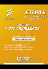 Torneo: 6TA CAB / 17-18-19 OCTUBRE / PRO PADEL / ETAPA 5