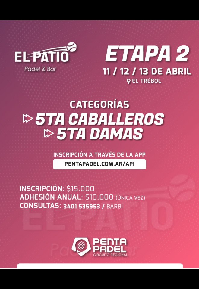»» Evento: 5TA CAB-5TA DAM / 11-12-13 ABRIL / EL PATIO / ETAPA 2 »» Localidad: El Trébol »» Fechas: 11/04/2025 al 26/04/2025