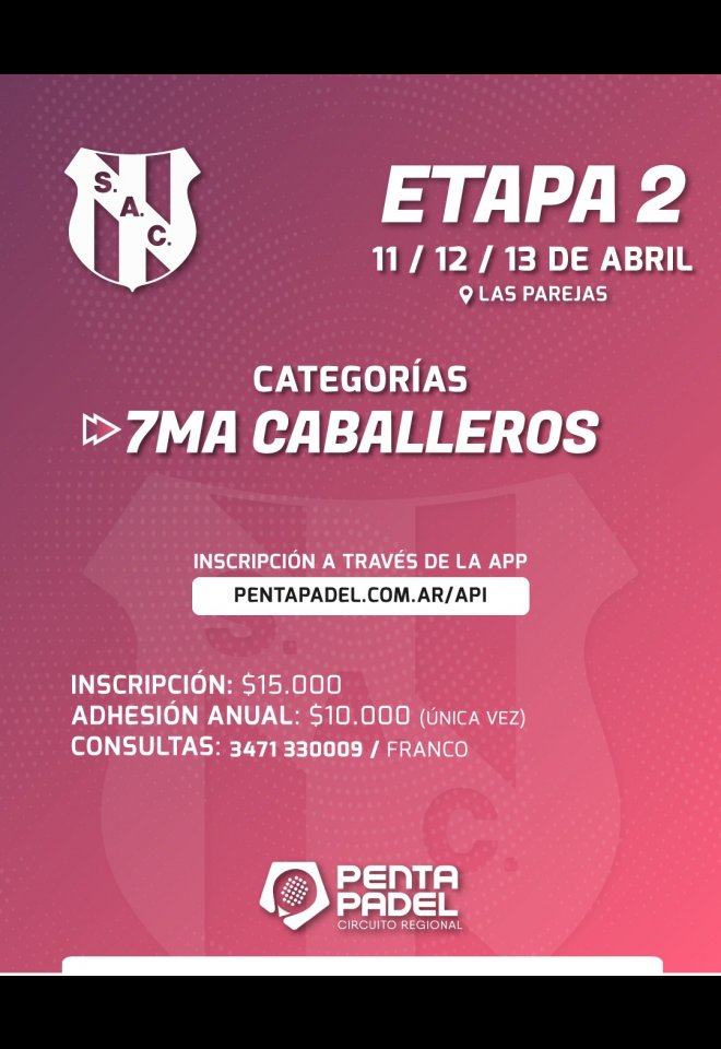 »» Evento: 7MA CAB / 11-12-13 ABRIL / SPORTIVO LP / ETAPA 2 »» Localidad: Las Parejas »» Fechas: 10/04/2025 al 13/04/2025