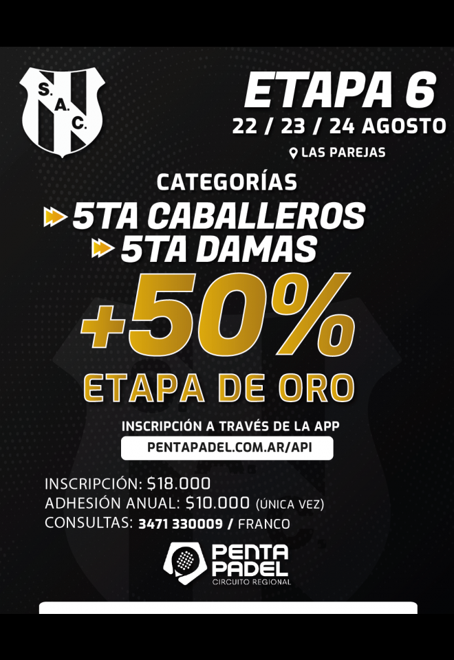 »» Evento: 5TA CAB - 5TA DAM / SPORTIVO LAS PAREJAS / 22-23-24 AGOSTO / ETAPA DE ORO »» Localidad: Las Parejas »» Fechas: 21/08/2025 al 24/08/2025