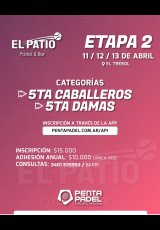 Evento: 5TA CAB-5TA DAM / 11-12-13 ABRIL / EL PATIO / ETAPA 2    Torneo: 5TA CAB / 11-12-13 ABRIL / EL PATIO / ETAPA 2 Fechas: 11/04/2025 al 26/04/2025