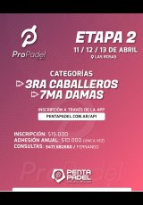 Evento: 7MA DAM - 3RA CAB / 10-11-12-13 ABRIL / PRO PADEL / ETAPA 2    Torneo: 7MA DAM / 11-12-13 ABRIL / PRO PADEL / ETAPA 2 Fechas: 10/04/2025 al 13/04/2025